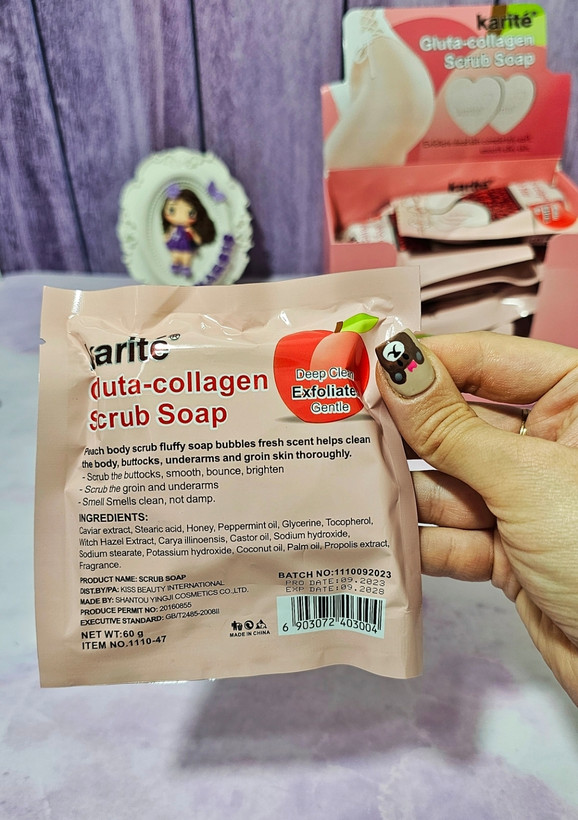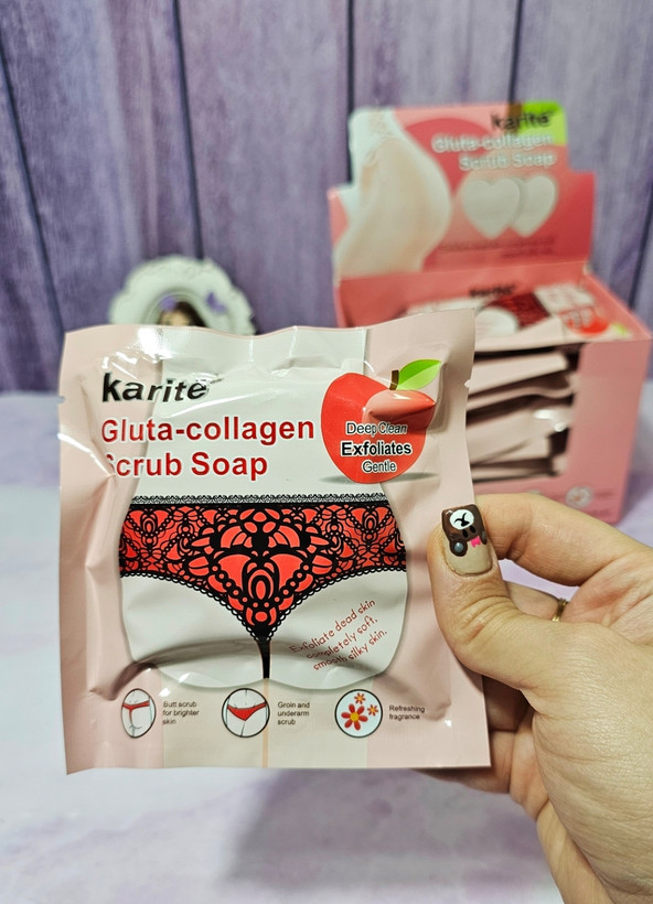 صابون اسکراب باسن برای رفع تیرگی های بیکینی،زیر بغل و کشاله ران..و همزمان لایه برداری ملایم میکنه که جوش های زیر پوستی رو از بین میبره وباعث مرطوب شدن پوست میشه