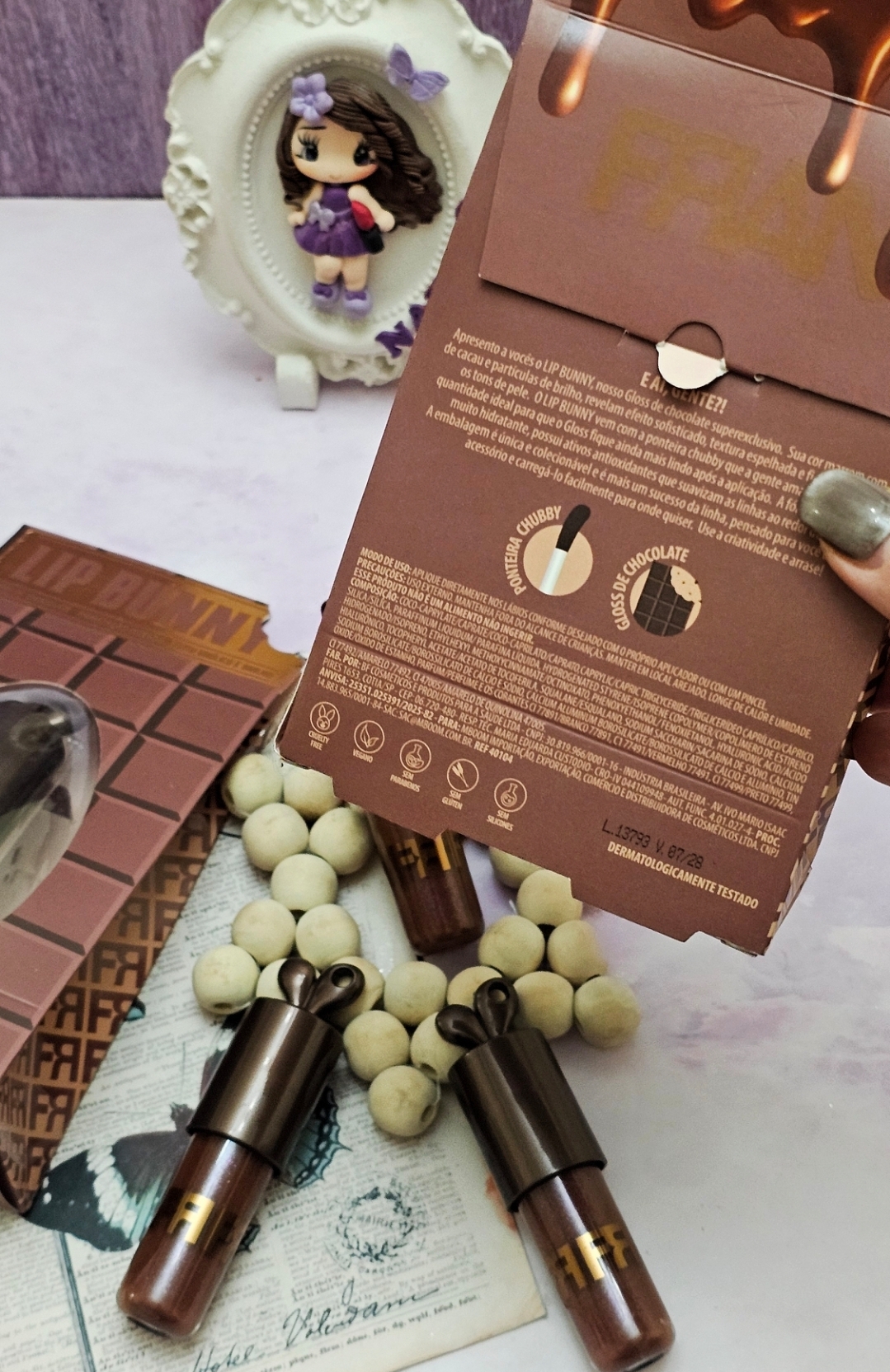 چندتا دلیل داره: رنگش خیلیی خوشگله و عین شکلاته و جزو رنگهای سال و محبوب بحساب میده، پوکه و ظاهر لیپ گلاس عین گوش خرگوشه و خیلی کیوته صمن اینکه یه سوراخم رو گوشش گذاشته که شما بتونید بعنوان اکسسوری ازش برای کیف و .. استفاده کنید، پکیج این محصول شیک و کادوییه و رایحش که واقعا دیوونه کنندست بوی شکلات خوردنی که جذابیت لیپ گلاسش و چندبرابر میکنه🥹 انقضا ۲۰۲۹ حجمشم نسبتا بزرگ بحساب میاد... بدون تست حیوانی