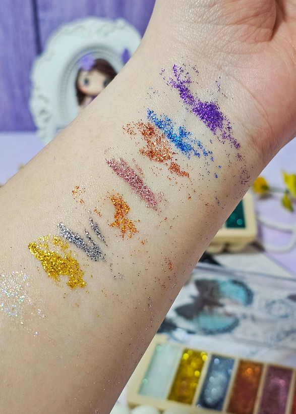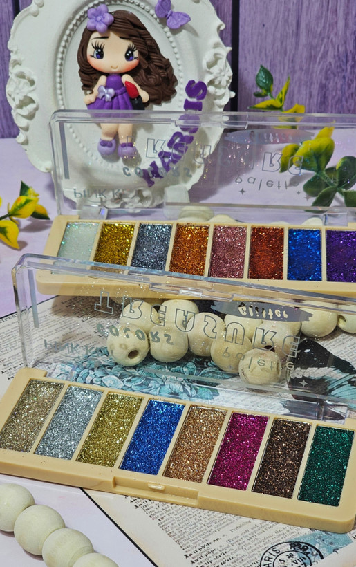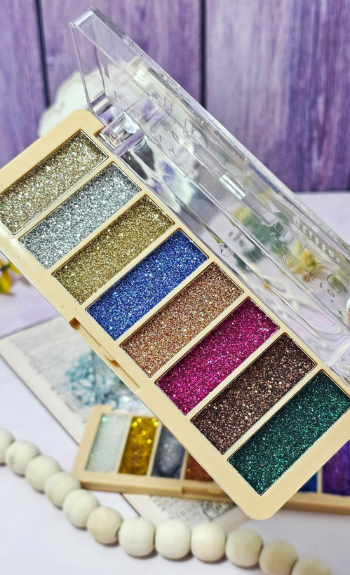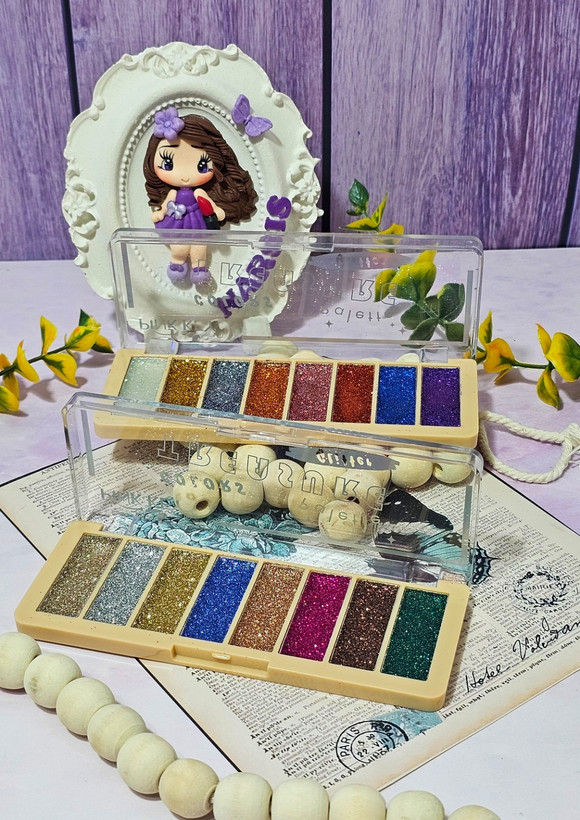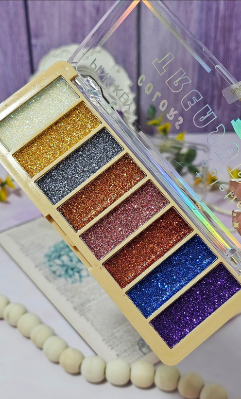 پالت سایه گلیتری پالت سایه گلیتری برای میکاپ های فانتزی و جذاب با رنگهای شاد برای مو ،چشم و گونه استفاده میشه بدون نیاز به چسب،پیگمنت فوق العاده ای داره مناسب سفر و هدیه دادنه دوتا پلت AوB داره